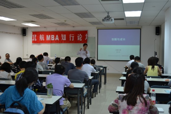 2013年5月11日晚6点,在北航新主楼A1048教室,北航MBA有幸邀请到清华大学全球领导力项目秘书长顾常超博士为北航MBA同学们带来了一堂生动的《创新与成长》讲座。顾博士曾任戴尔、亚马逊等跨国公司战略和市场等管理职位,受聘担任多个地方政府和大型企业的规划顾问;美国百人会英才奖获得者,还担任德国清华大学员工会理事,北航MBA中心副主任秦中峰教授主持本次讲座。