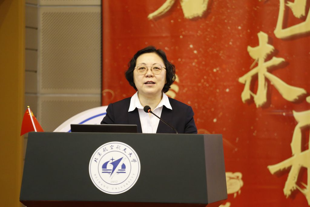 表彰会上,2021年度新进教师带来合唱《年轻的朋友来相会》。他们用奋进的歌词、昂扬的旋律诠释了青年教师蓬勃向上的精神风貌;获得管理服务之星的老师们用一首《灯火里的中国》,展现了学院教工对祖国的美好祝福以及对未来的欣然向往,将现场的热烈气氛推向高潮。最后,全院师生高声合唱北航校歌《仰望星空》,表彰大会圆满落下帷幕。
