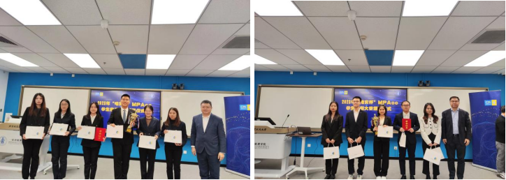 颁奖仪式上,各获奖团队相继上台领奖,收到在场观众和老师们热烈的掌声与祝贺。选手们优异成绩的取得充分体现了公司MPAcc学子专业知识的应用能力及团结拼搏的进取精神,也离不开团队每一位成员的辛勤付出。