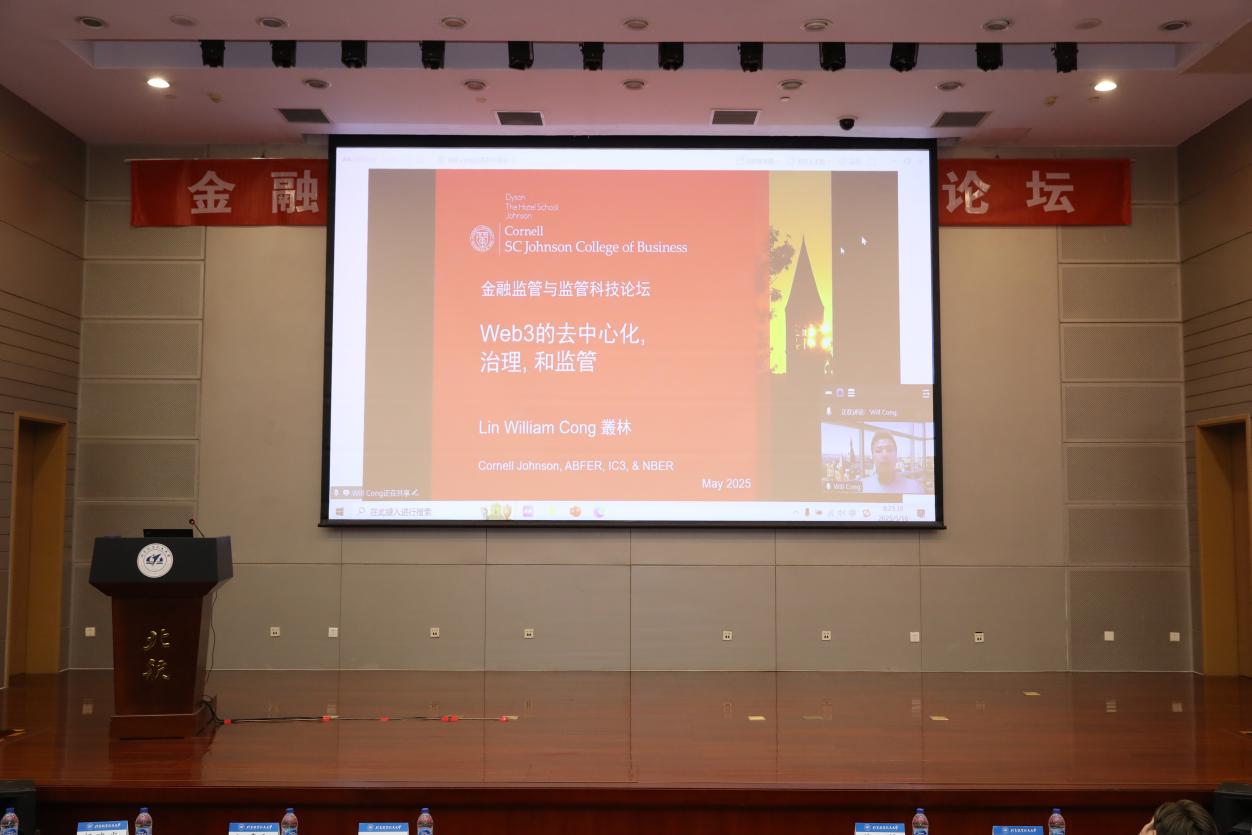 在5月18日上午的大会报告中,发展中国家科学院院士、国际系统与控制科学院院士、中国科学院数学与系统科学研究院汪寿阳研究员带来题为“加密货币与金融监管的几个问题”的大会报告。中国科学院数学与系统科学研究院杨晓光研究员带来题为“市场辅助监管机制的有效性”的大会报告。首都经济贸易大学党委副书记、董事长吴卫星教授带来题为“量、异、需:金融市场供给特征与家庭参与”的大会报告。康奈尔大学约翰逊商学院讲席教授丛林带来题为“Web3的去中心化治理和监管”的大会报告。International Review of Financial Analysis期刊主编、Luiss Business School金融学教授Samuel A. Vigne带来题为“Biodiversity and Corporate Finance”的大会报告。