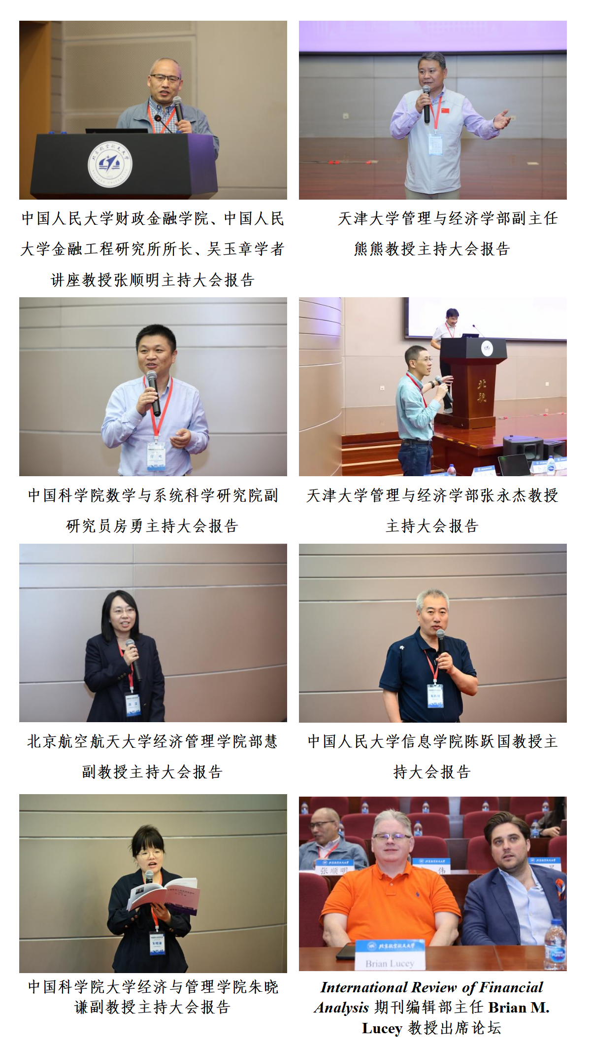 论坛得到了多个期刊的支持。International Review of Financial Analysis期刊的主编Samuel A. Vigne出席并做大会报告,该期刊的期刊编辑部主任(development editor)、都柏林圣三一大学Brian M. Lucey教授出席论坛。论坛支持期刊《管理科学学报》期刊编委、编辑部主任、责任编辑熊熊教授,《管理评论》期刊主编李建平教授,《金融监管研究》期刊编辑关天颖,《系统工程理论与实践》期刊主编杨晓光教授、副主编范英教授、副主编李仲飞教授,《中国管理科学》期刊主编李建平教授等出席论坛。