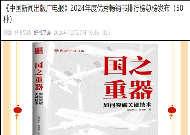 《中国新闻出版广电报》由中共中央宣传部主管,是我国出版领域具有代表性的权威媒体之一,其 “年度优秀畅销书排行榜” 以评选标准严谨、行业认可度高为特点。《国之重器:如何突破关键技术》作为近五年永利官网人文社科类著作中入选该榜单的作品之一,倍感荣幸。