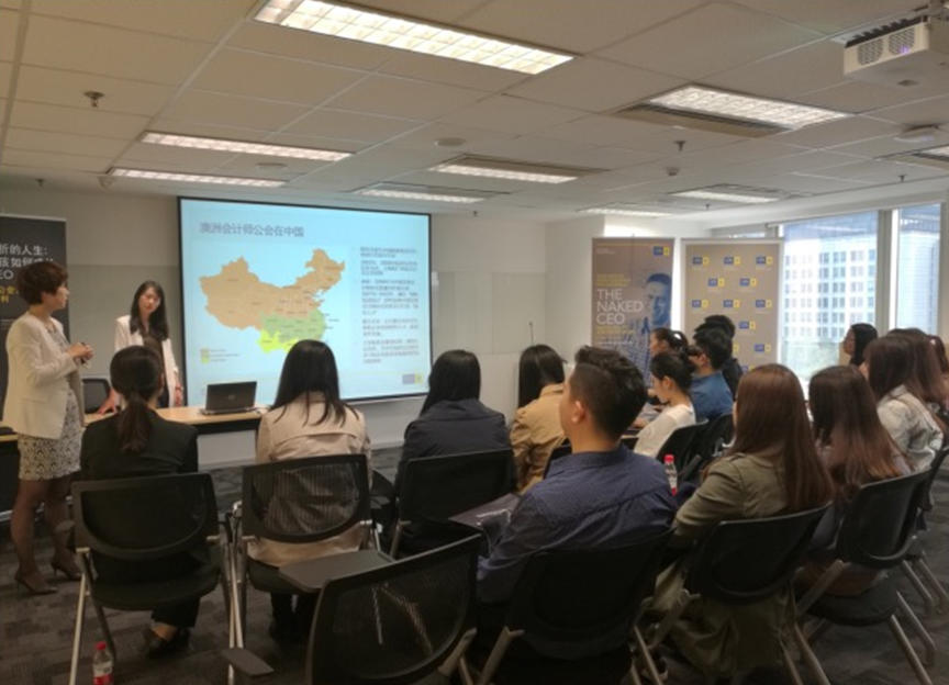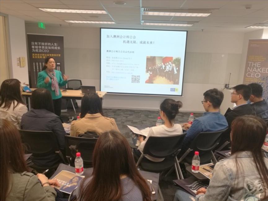 首先,澳洲会计师协会北京代表处张竞微(Erin Zhang)女士先后从澳洲协会的发展史、协会为会员提供的服务、用人单位对澳洲注册会计师的认可以及澳洲注册会计师考试的课程结构与特点等方面做了详细介绍,使同学们对澳洲注册会计师有了全面的认识,并触发了同学们对自己未来职业道路的选择和深层次思考。