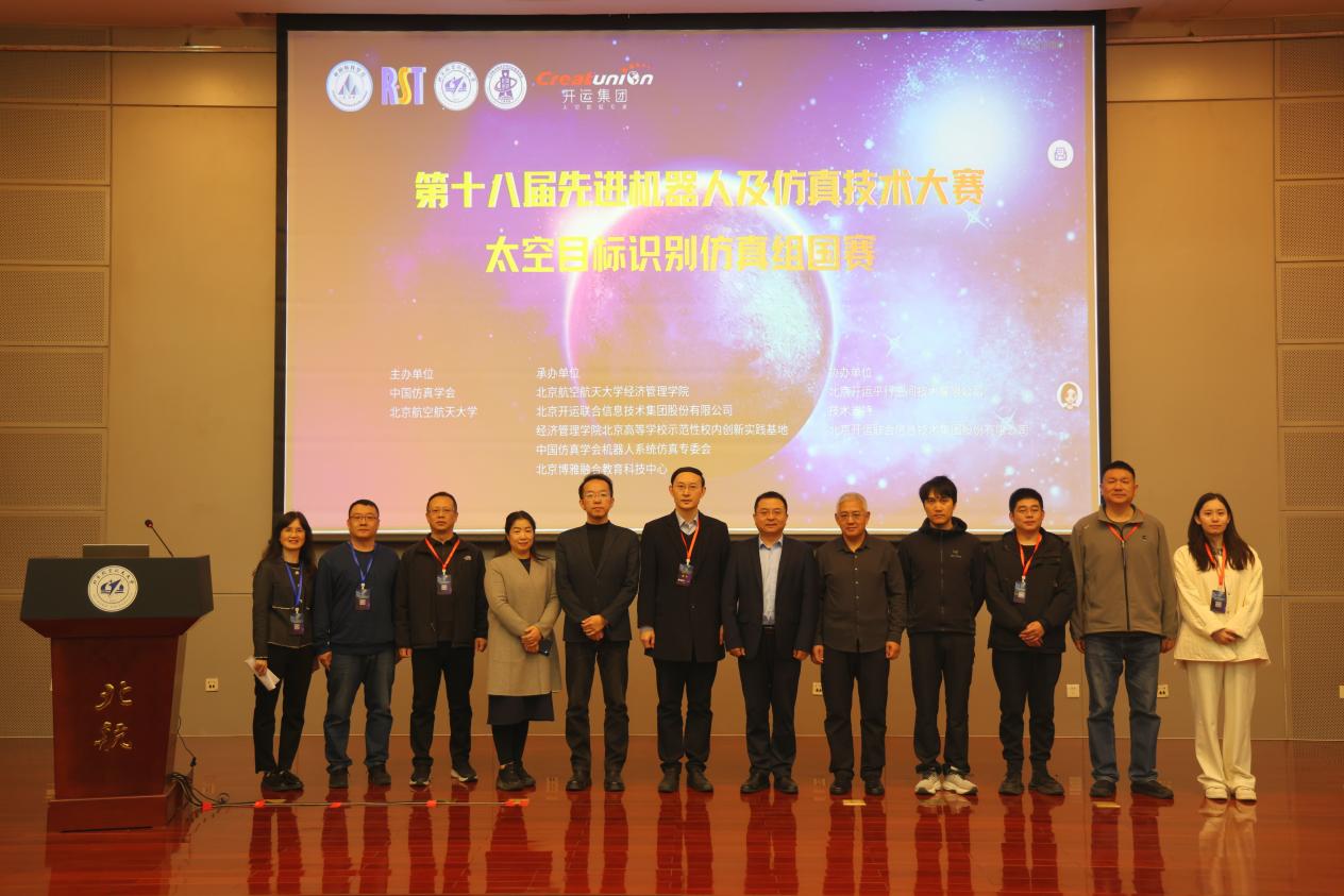 2025年10月29日,第十八届先进机器人及仿真技术大赛(简称“RST大赛”)仿真技术赛道——太空目标识别仿真组国赛在永利官网圆满落幕。本次大赛国赛由中国仿真学会主办,由北航yl6809永利、北京开运联合信息技术集团股份有限公司、经济管理北京高等学校示范性校内创新实践基地、中国仿真学会机器人系统仿真专委会、北京博雅融合教育科技中心共同承办。yl6809永利副经理秦中峰、先进机器人仿真技术大赛组委会副主任王正言、北京开运联合信息技术集团股份有限公司副总裁史敬与技术总监李亚亚、中国科学院国家天文台研究员赵有、沈鸣等共同出席本次活动。