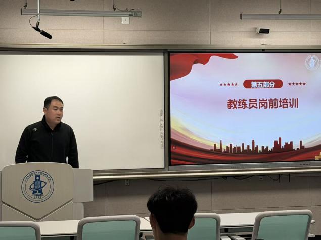 为保障后续教学质量与运动安全,仪式特别设置了“教练员岗前培训”环节。本环节由体育部何可老师主讲,重点强调了运动安全须知,并指导教师们在实际教学中注重分层教学,因材施教,为高质量教学打下坚实基础。