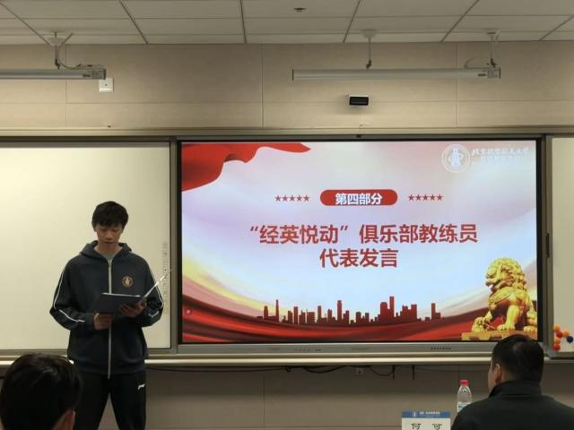 随后“经英悦动”俱乐部教练员钟澄灿代表全体教练员发言,他表示自己将会尽最大努力帮助更多的员工,认真负责的上好每一堂课,传递出全体教练投身校园体育工作的热情与决心。