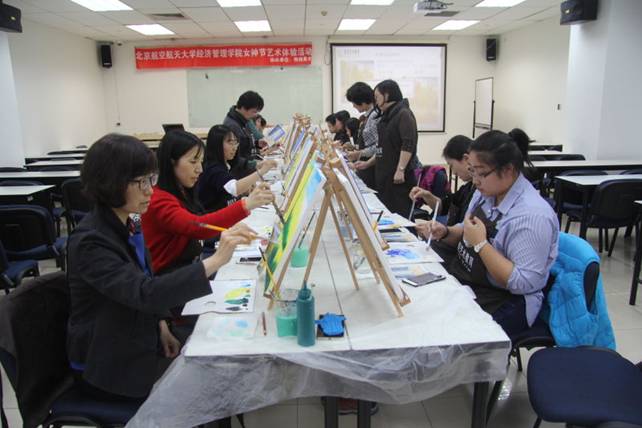 3月22日下午,经管女教职工欢聚新主楼A928,在稚纯艺术教育培训老师的指导下,体验油画艺术的完整创作过程。公司女教职工欢声笑语,发挥想象,每人完成一幅30cmX40cm油画作品,度过了一段精致悠闲的美好时光。